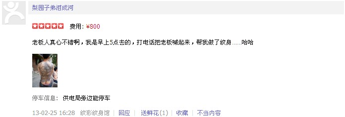 看看到紋過朋友怎么說(來自最真實的點評——大眾點評網(wǎng)):